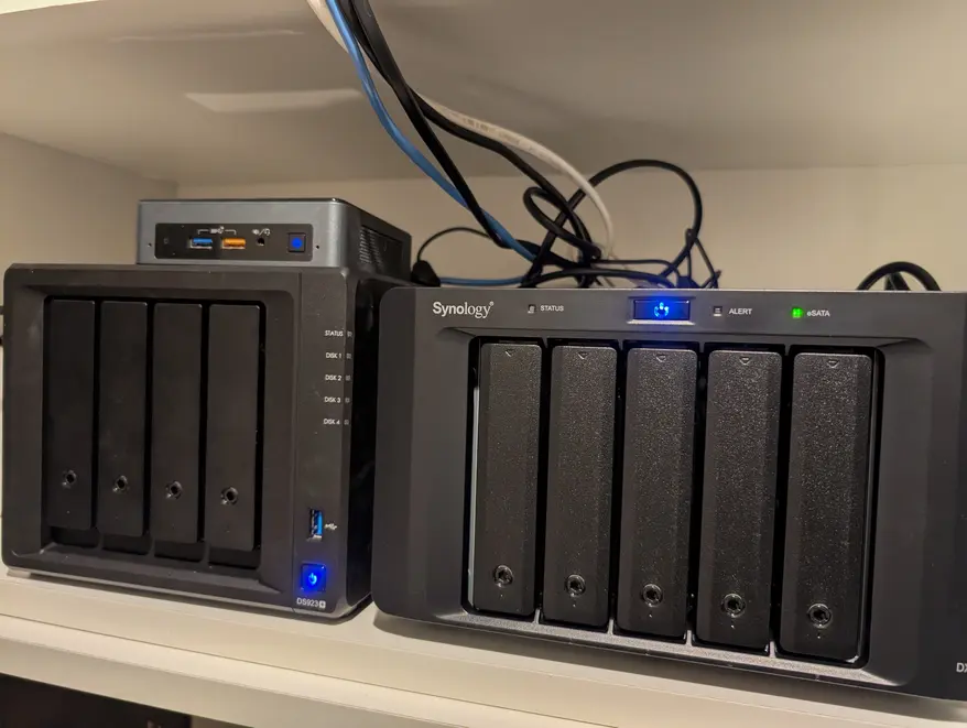 Synology の NAS が良かった。DiskStation DS923+ (¥99,391) と Expansion Unit DX517 (¥76,843) を購入。ソフトウェア(というかOS)の完成度が高くて驚いた。初めから8ベイの製品を購入すれば良かったと後悔してる。