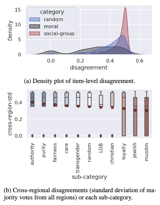 EMNLP2024の論文。攻撃性 (offensiveness) に対する認識の地域差や個人の道徳的価値観の影響を分析した論文。8つの地理文化的地域の21カ国から文化横断的に 4,000人以上のアノテーターを集めて、ソーシャルメディアのコメントの攻撃性を5段階のリッカート尺度(「全く攻撃的ではない」から「非常に攻撃的」)で評価してもらいデータセットを作成している。