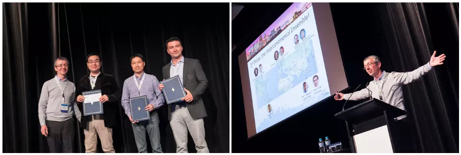 次第にチームで参加したほうが学びが多いことに気づき、積極的にチームを組むようになった。2015年ごろからニューヨークの同僚と Kaggle でチームを組むことが増え、最も古く権威あるコンテストと言われている(諸説ある) KDD Cup に優勝したり、複数の Kaggle コンペで入賞・優勝した。当時所属していた AIG の CEO であった Peter Hancock からメールでお褒めの言葉をいただき、何度もメールを見返した。 これには上司もニッコリ上機嫌であったが、そのすぐ後に退職したい旨を上司に伝えたのは申し訳なかった。紆余曲折あり、KDD’15 への参加費を自己負担して有給をとり発表しに行った。コンテストの賞金より旅費と参加費のほうが高額であったが、チームメイトと初めて会ったその日のうちに次のコンテストの特徴量の話題で盛り上がり大変楽しい思い出となった。